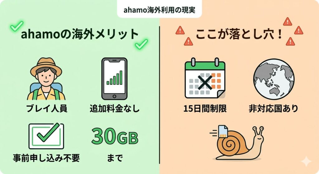 ahamoは追加料金なしで海外ローミングが使える便利なプランですが、