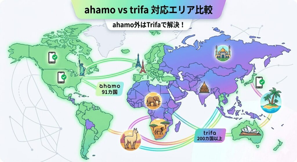 🌏 ahamoとtrifaの海外対応状況 比較表